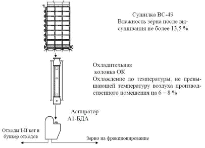 После пропарки, гречихи попадает в паровую сушилку ВС-10-49, предназначенная для сушки и поджаривания крупяных культур и готовой крупы. Сушка зерна осуществляется воздухом с температурой 75 C до влажности не выше 13,5% охлаждение ведется до температуры, не превышающей температуру производственного помещения на 6-8 C.