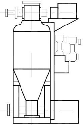 Вертикальная паровая сушилка непрерывного действия предназначена для сушки и поджаривания крупяных культур или готовой крупы. Сушилка собрана из отдельных секций прямоугольного сечения, образующих вертикальную шахту. Шахту комплектуют из восьми, десяти, двенадцати и четырнадцати тепловых секций. Над верхней секцией установлен приемный ковш, а в нижней секции расположено выпускное устройство. Во всех остальных секциях в продольном направлении в шахматном порядке проходят девять труб 50 мм, внутри которых проходят трубы 25 мм. К боковым стенкам секций прикреплены скаты, направляющие зерно на паровые трубы. Для предотвращения пригорания зерна над трубами укреплены отражательные козырьки в виде уголков из листовой стали. Тепловые секции комплектуют из двух чугунных боковин, к которым крепят двойные трубы. Внутренние трубы ввинчены в стенку канала и открыты с обоих концов, а наружные трубытолько одним концом ввинчены в стенку канала, другой же конец закрыт крышкой. В передней стенке сушилки сделано два вертикальных канала: канал подачи свежего пара и канал отвода отработавшего пара (конденсата). Канал подачи свежего пара в верхней секции соединен с паровой магистралью, а канал отвода пара в нижней секции сообщается с конденсатоотводящей магистралью. Тепловые секции снаружи ограждены съемными щитами, в которых с одной стороны устроены люки с задвижками для засасывания воздуха в сушилку, а с другой стороны - отверстия для всасывающих труб вентилятора, который отсасывает из сушилки воздух вместе с водяными парами.