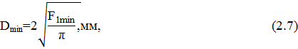 Определим минимальную площадь гидроцилиндра, из требуемого