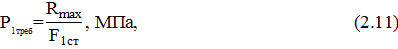 где Rmax = 3000 Н - максимальное усилие подачи;