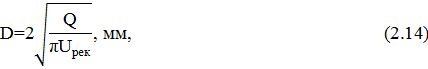 Uрек - рекомендуемая скорость течения жидкости в трубопроводе [3], м/с;
