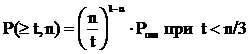 Зависимость вероятности появления искаженной комбинации от ее длины n и вероятность появления комбинации длиной n с t ошибками.