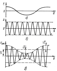 Амплитудная модуляция состоит в пропорциональном первичному сигналу x(t) изменении амплитуды переносчика