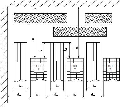 Высота (основной размер) обмотки ВН с каналами между всеми катушками:= b` ∙ nкат2 + k∙(hk(nкат2-2)+hкр2), (49)