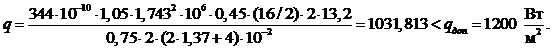 q, Вт/м2, причем, его значение не должно превышать допустимого , qдоп = 1200