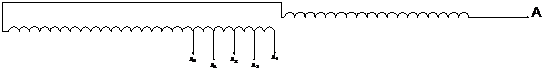 В обмотке ВН выполняют ответвления для регулирования напряжения путем переключения без возбуждения (ПБВ) после отключения всех обмоток от сети. В ГОСТе предусмотрено пять ответвлений на +5%, 2,5%, 0%, -2,5%, -5% от номинального напряжения. Согласно [1], для непрерывной спиральной катушечной обмотки, применяемой как на ВН, так и на НН, чаще всего используют схему выполнения регулировочных ответвлений, представленную на рис. 2.