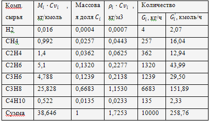 - средняя молекулярная масса парогазовой смеси на выходе из