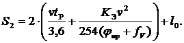 водителя и включения тормозов, tP=2 с;Э - коэффициент