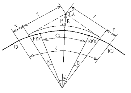 длина переходной кривой).