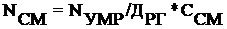количество рабочих смен в сутки соответствующего подразделения, одна смена. При