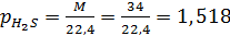 3) плотность сероводорода: