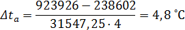 ) рассчитываем повышение температуры абсорбента: