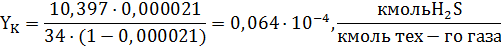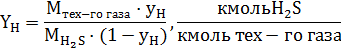 у - мольная доля сероводорода в газе;