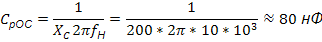 Величину емкости СР ОС определим из условия XСрОС << RОС на fН.