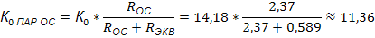 Коэффициент усиления каскада с учетом действия параллельной