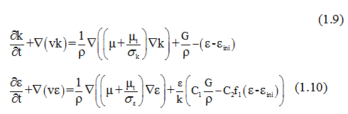 Модель турбулентной несжимаемой жидкости основывается на k-ε модели турбулентности [24]: