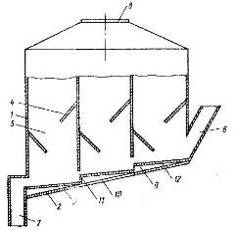 стенки 2 и поперечные вставки 3, образующие сепарационные колонны с пересыпными
