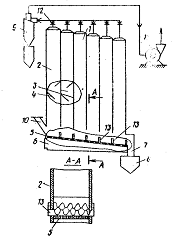 устройства в виде патрубка 7, бункера 8 и циклона 9, загрузочный патрубок 10,