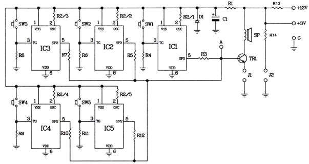Устройство собрано на двух микросхемах: D1-LM386 и D2-RTS0072B. LM386 - усилитель низкой частоты. RTS0072B <#"863768.files/image001.gif">