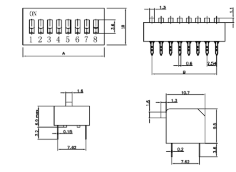 Походящим стали переключатель DP-06 (SWD3-6). DIP (DualIn-linePackage, также DIL) - тип корпуса микросхем, микросборок и некоторых других электронных компонентов. Имеет прямоугольную форму с двумя рядами выводов по длинным сторонам. Может быть выполнен из пластика (PDIP) или керамики (CDIP). Обычно в обозначении также указывается число выводов.