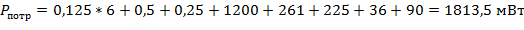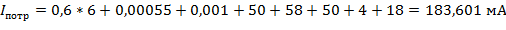 2. Определяем общийпотребляемый ток схемы и общей потребляемой