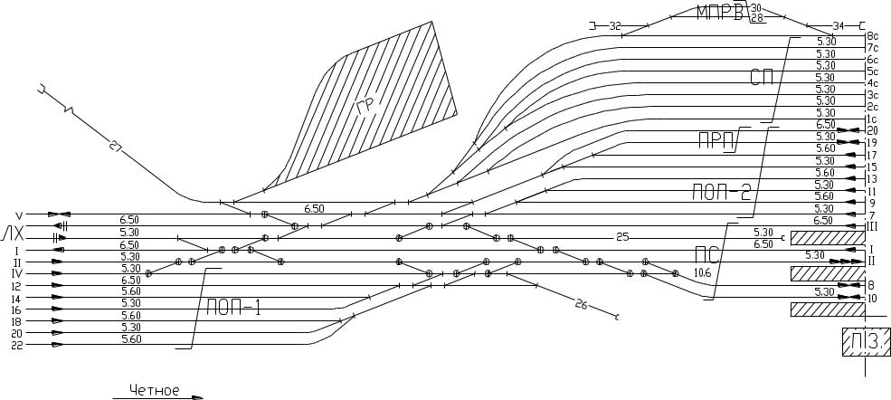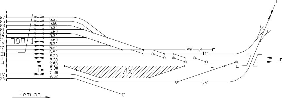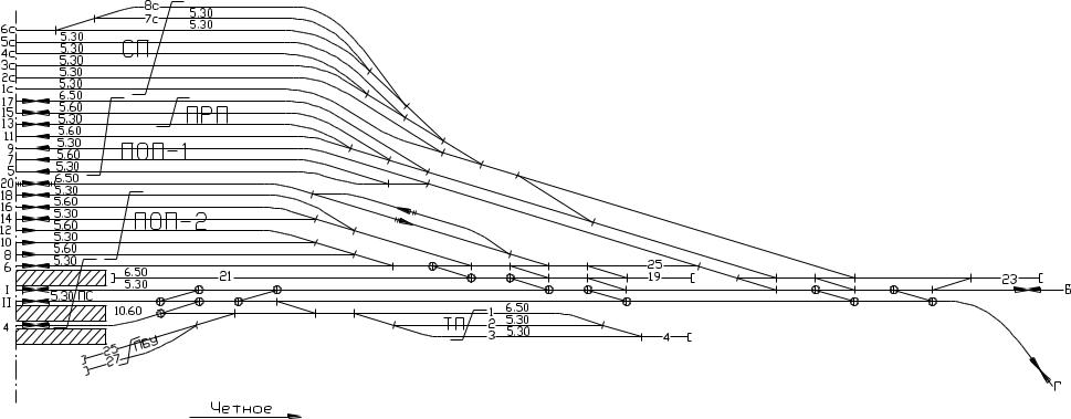 Рисунок 4.5 – Конструктивная схема нечетной горловины станции продольного типа