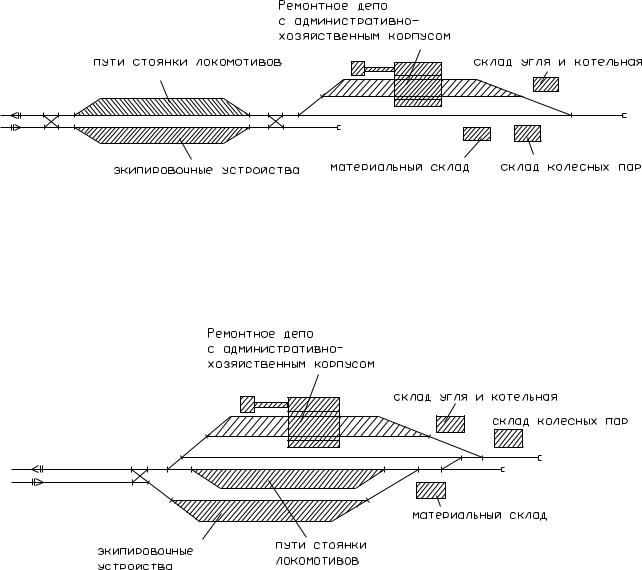 Рисунок 7.4 – Экипировочные устройства, пути стоянки локомотивов и ремонтное депо расположены параллельно