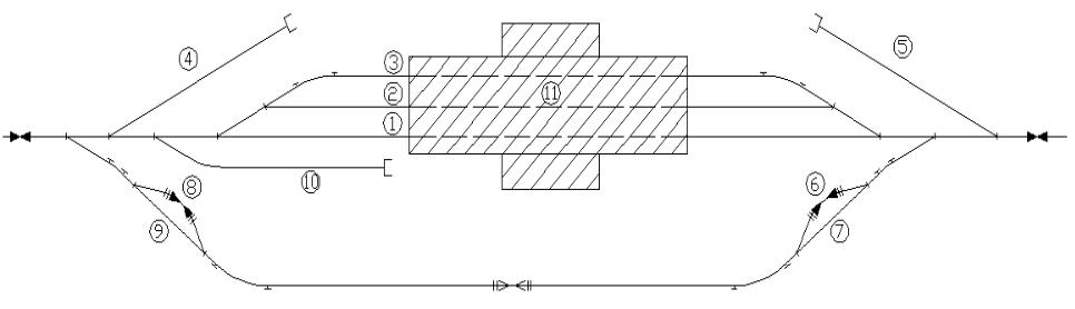 На рисунке 7.9 представлена схема вагоноремонтного депо сквозного типа, что позволяет с двух сторон подавать и убирать вагоны в цех без прекращения ремонтных работ.