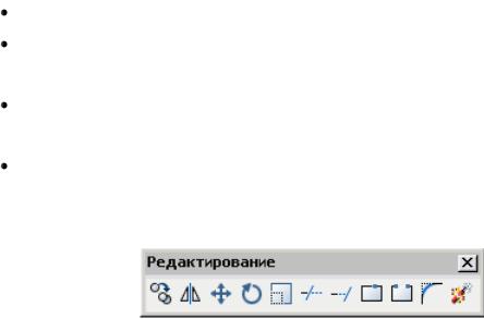 «Разорвать» (разрыв объекта между двумя заданными точками); «Сопряжение» (соединение отрезков и других объектов частью окружности заданного радиуса); «Рассоединить» (разделение составного объекта на элементарные части – отрезки, точки).
