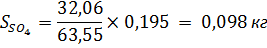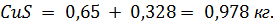 Общее количество побочных продуктов обжига из 100 кг концентрата