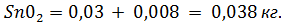 Суммарная масса твердого продукта обжига, соответствующего по степени окисления пыли электрофильтров и скруббера: