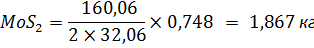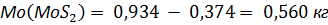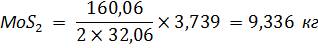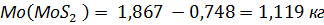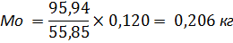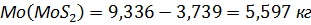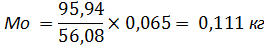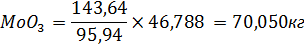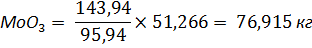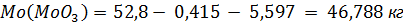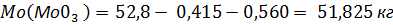 В 100 кг концентрата находится 52,8 кг молибдена. В продукте обжига будет