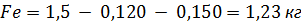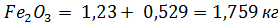 Суммарная масса твердого продукта обжига, соответствующего по степени окисления циклонной пыли:
