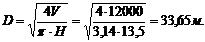 Задаюсь высотой резервуара Н=13,5 м,