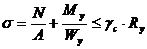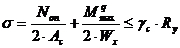 моменте нормальные напряжения от продольной силы и момента будут одинакового