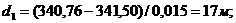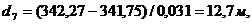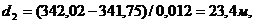 d2 = (341,25 - 341,12)/0,020 = 6,5 м.
