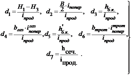 Расстояния d1 и d2 по осям лотков въезда:= (341,25 - 341,18)/0,020 = 3,5 м;