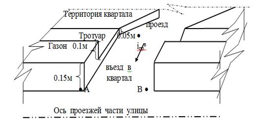 hпор - высота поребрика, отделяющего проезд от прилегающей территории квартала.