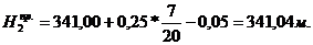 НА = 341,00 + 0,25 * 20 / (8 + 20) = 341,18 м;