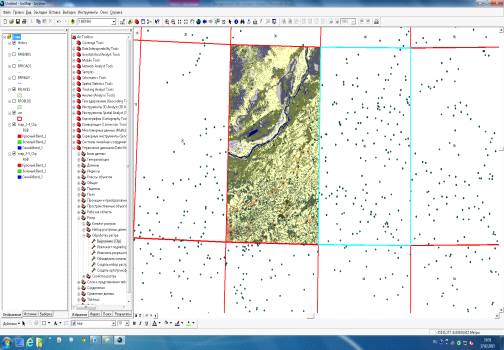 Для начала с помощью инструмента «Выбрать объекты», выбираем вариант 35, далее для выполнения вырезания переходим в приложение «ArcToolbox» выбираем инструмент «Управление данными» à «Растр» à «Обработка растра» à «Вырезание», выбираем необходимый входной растр и выходной экстент (Variant). Так же необходимо включить опцию «Использовать входные объекты для вырезания геометрии», так как использование данной опции позволяет вырезать растр по границам используемого для работы варианта (рис.3).