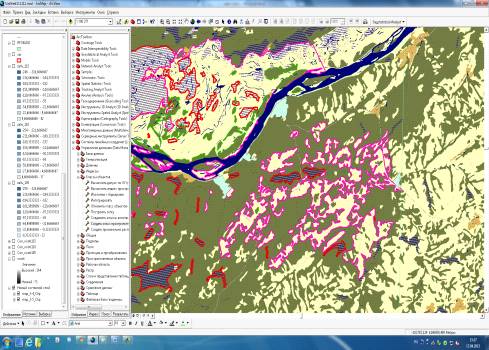 объектов - поля, болота, леса, населенные пункты (тип геометрии POLYGON),
