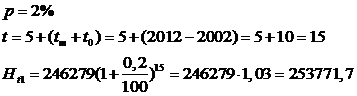 p=2% - среднегодовой прирост населения,