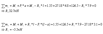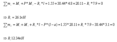 M=M1+Ra*z=0=M1=1.55 кН=a=1.55+12.34*4.8=60.8 кН