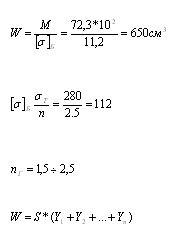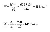 Минимальный момент сопротивления найдём из условия прочности на изгиб