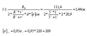 Для обеспечения плотности стыка вычислим напряжения первоначальной