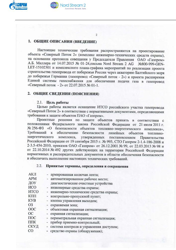 Приложение В Технические требования на проектирование газопровода «Северный поток – 2»