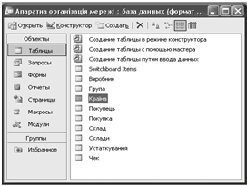 База даних створена у середовищі СКБД Access 2003.