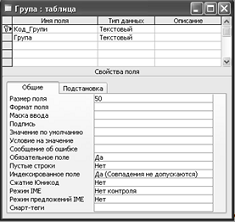 1. Код_Групи - тип даних - текстовий, обов’язкове поле, збіги допускаються, пусті рядки не допускаються.