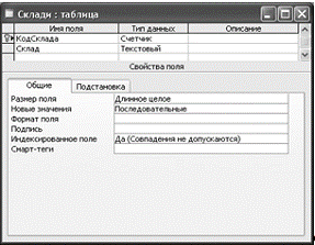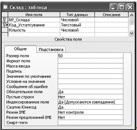 1. Код_Склада - тип даних - лічильник, збіги не допускаються.
