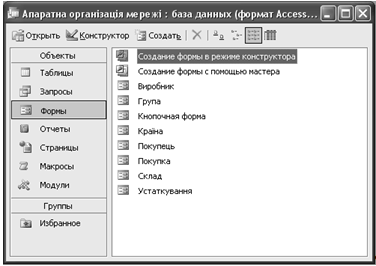 Рисунок 6.10 - Форми бази даних